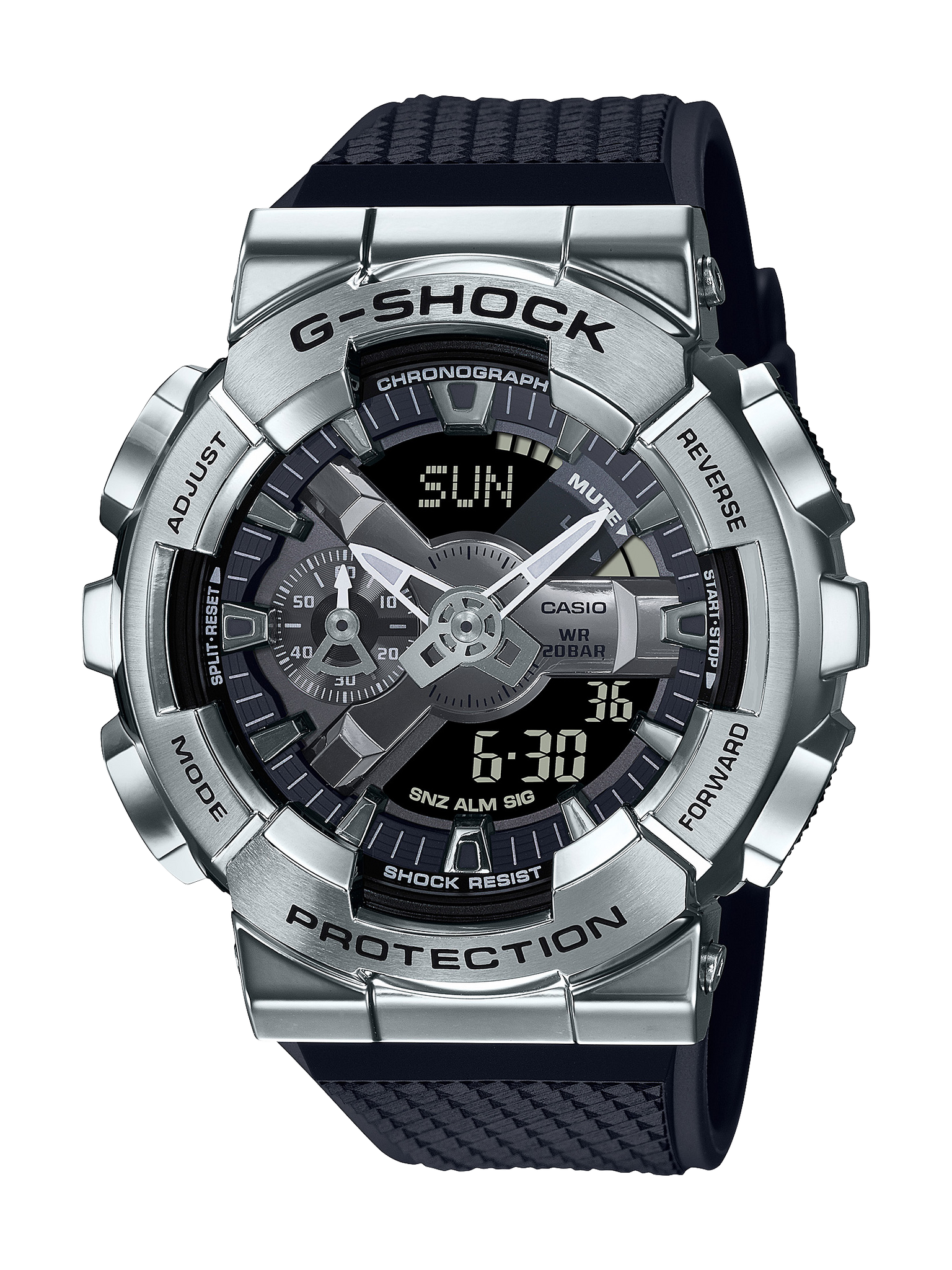 The stainless steel bezel of this analog-digital GM-110 Series model have been forged, cut and polished to give it its distinctive design.