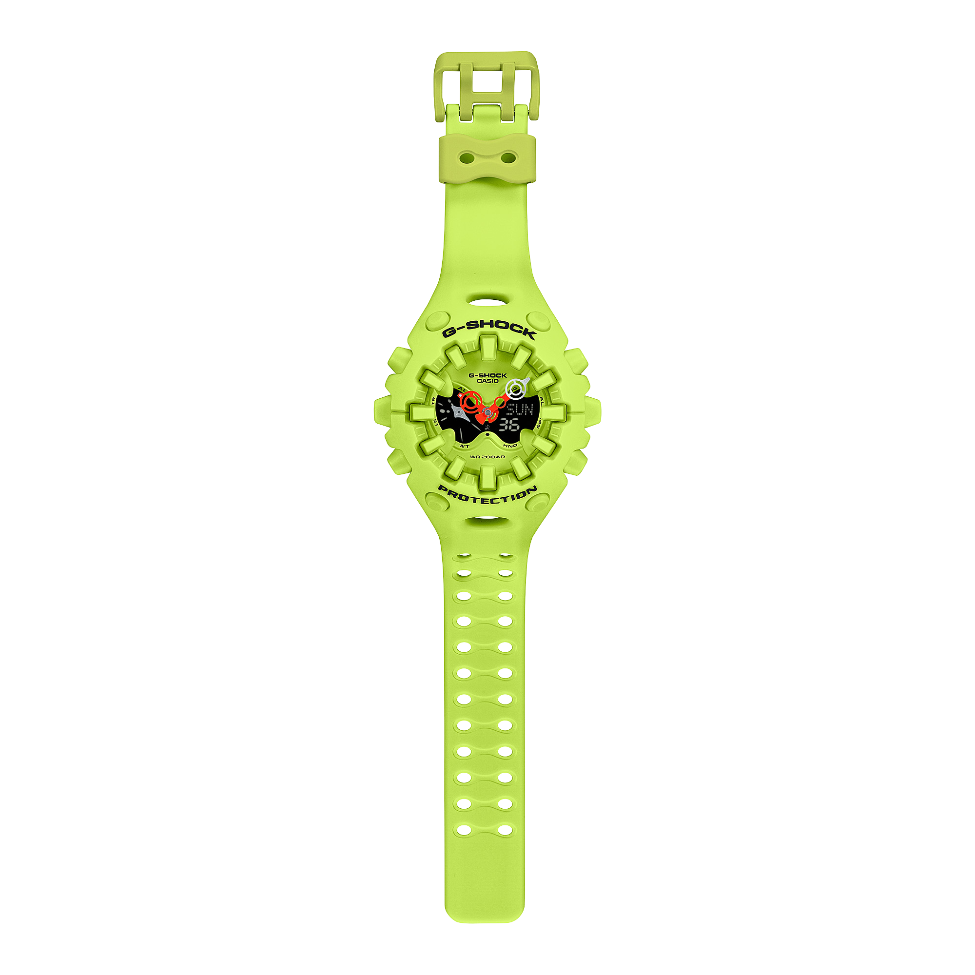 Everyone counts on G-SHOCK for unceasing evolution. But check out this comprehensive reinterpretation, representing the G-SHOCK approach to construction and design that powerfully conveys the brand’s unwavering commitment to toughness. The GA-V01 features an exterior with an organic form bringing together components with sharply defined edges, combined with a large, full-screen LCD topped by a metallic dial with openwork and employing the Shock Release Hand, among other features. With its strikingly innovative and original design concept, the GA-V01 exudes G-SHOCK toughness, restating the brand’s never-ending spirit of challenge and commitment to delivering strength.