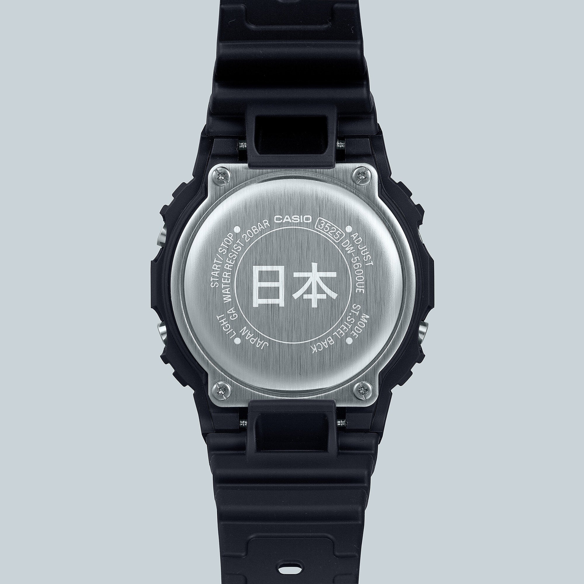 Only a beloved classic like the digital DW-5600 is bold enough to highlight Hokusai’s iconic works, which take center stage on the dial. Press the light button to see 日本, the Japanese characters for Japan, appear. These same Japanese characters are engraved on the case back, as well.