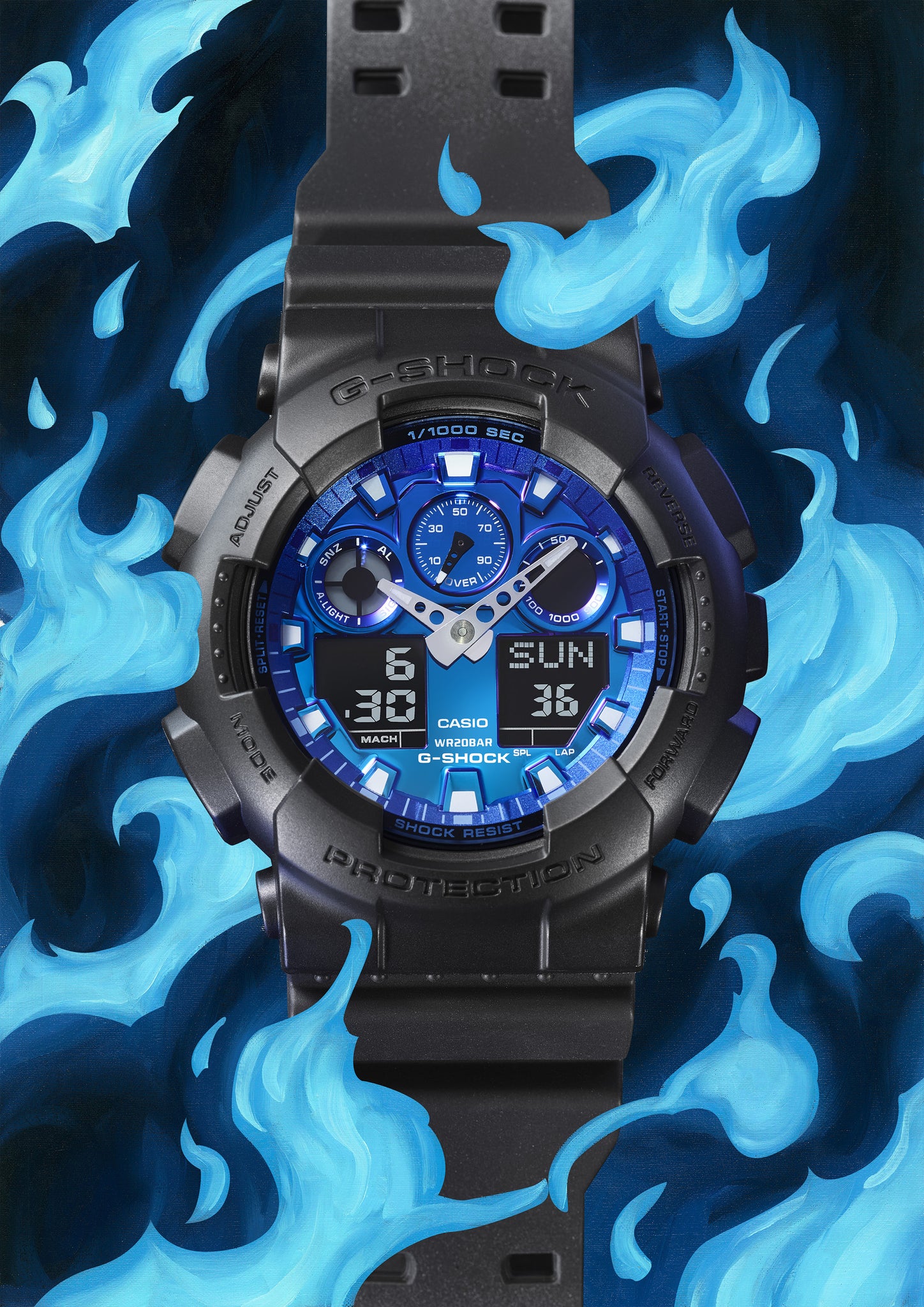 The Flame Blue models (GA-100FL-1A, GA-2100FL-1A) symbolise the unwavering determination that drives people forward.