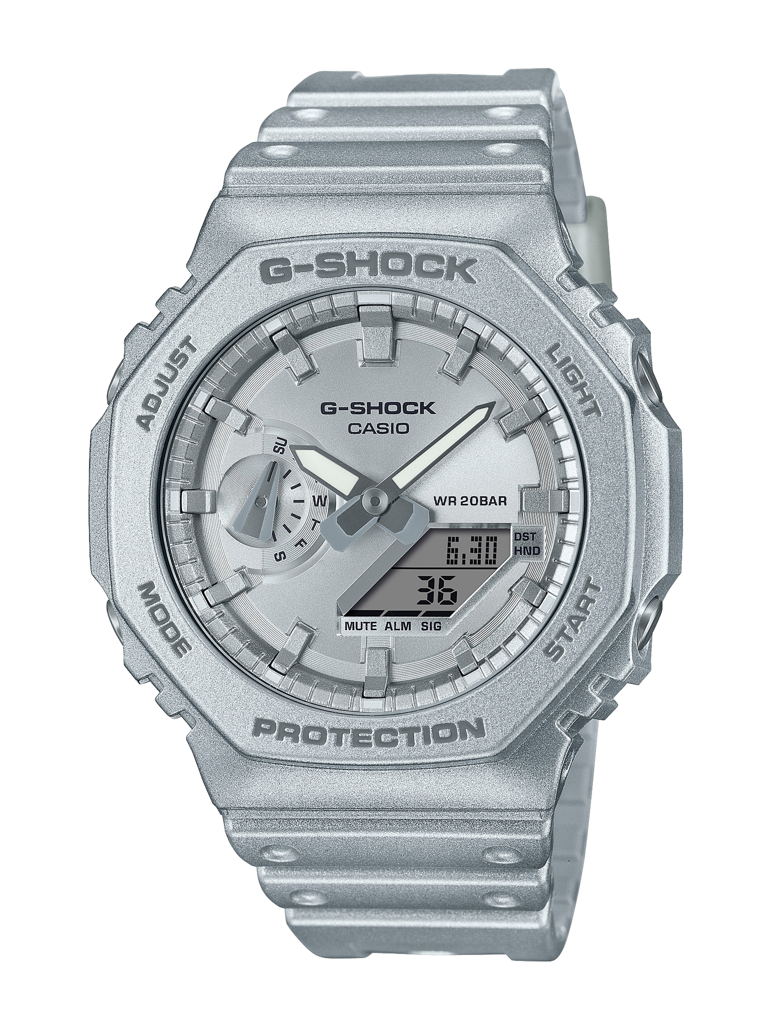 Travel back to futures past with G-SHOCK retrofuturistic designs in metallic silver.