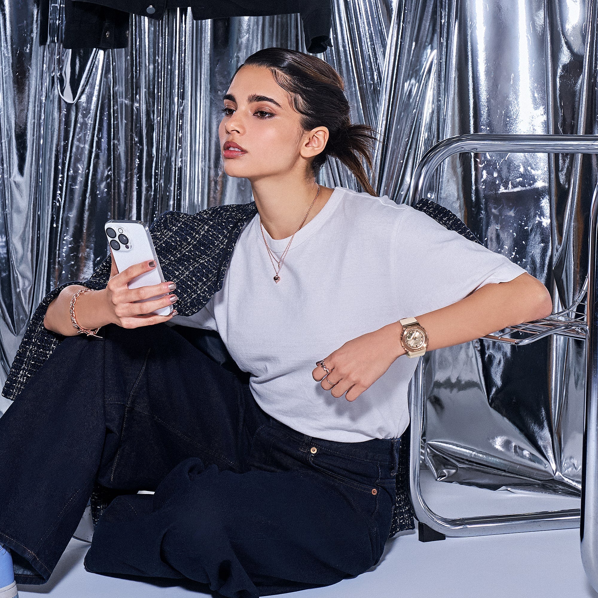 Metal elements in the dial add shine and texture, while the compact size ensures a comfortable fit for slimmer wrists. The sophisticated, minimalist design beautifully complements whatever you’re wearing, from stylish fashion to casual cool.