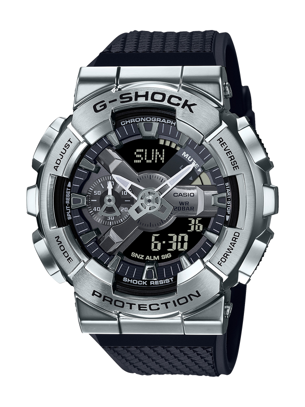 Ten years have passed since that day. Having continued to evolve in a dazzling array of diverse models, the GA-110 now arrives at a new peak moment in its history, with the new metal-covered construction. The original CMF design delivers fresh new colors, materials and finishes. Distinctly tinged with the DNA of the GA-110, its forebear, the new GM-110 presents its own completed form, a model offering both strength and beauty as a watch.