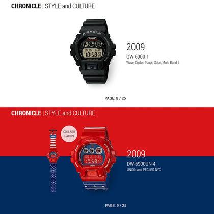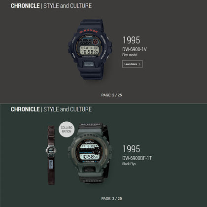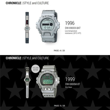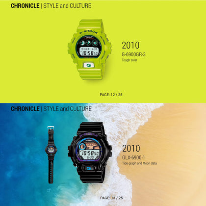 The 6900 series, you cannot mention G-SHOCK without touching on its line of unforgettable collections: the 6900 series. With its rounded form a departure from the squared design of the original DW-5000 model, the series won fans as a “Triple Graph” model upon its 1995 debut and has steadfastly remained just as popular to this day.