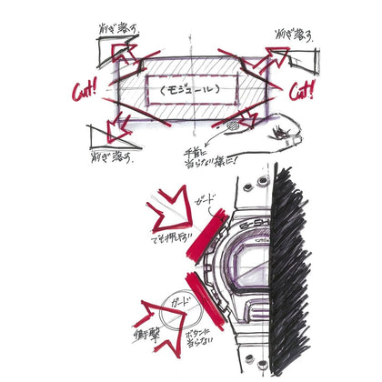 The inner case and metal bezel fit together with minimal surface contact. The G-SHOCK’s hollow case structure is now available with a metal exterior.