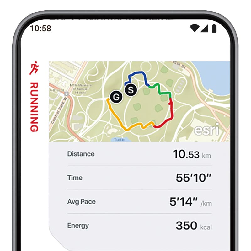 Variety of visuals and graphs, including map display of routes travelled, make it easy to check activity history.