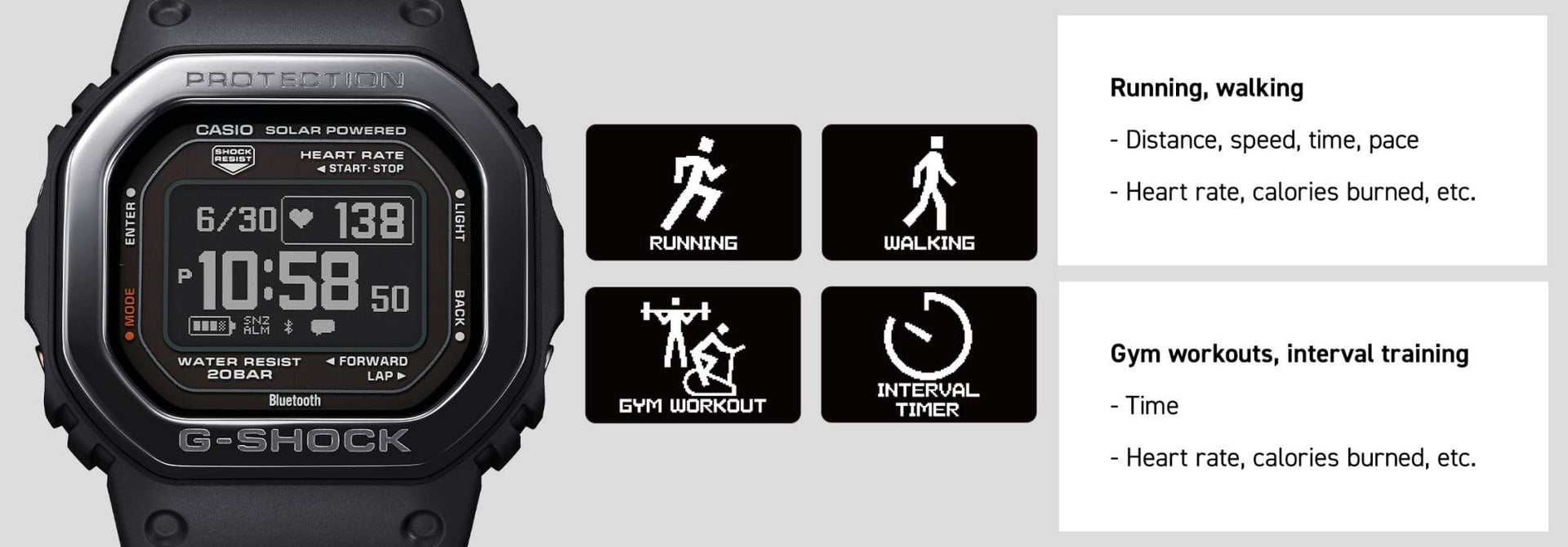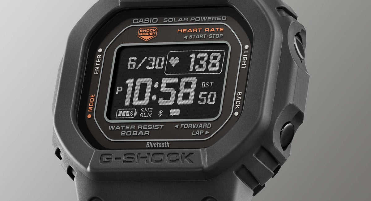 This selection of new watches boasts the iconic octagonal form of the original G-SHOCK, but now equipped with optical sensors to measure heart rate. Smartphone connectivity provides multifaceted support for daily workouts as well, from measurements for a diverse range of activities to training analysis and management. The iconic G-SHOCK 5600 line has evolved, boldly breaking into the athletic world.
