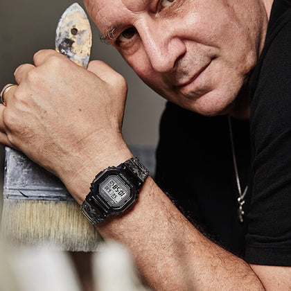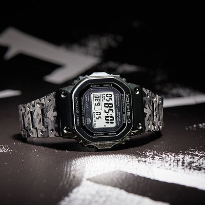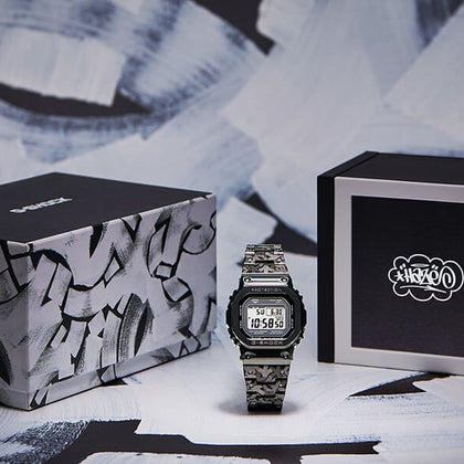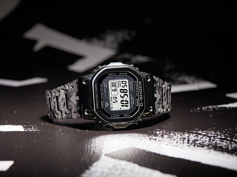 Introducing a new collaboration with Eric Haze, featuring a logo the graffiti artist has specially designed to commemorate the 40th anniversary of G-SHOCK. Based on the GMW-B5000 — the original full-metal take on the first-ever G-SHOCK, the DW-5000C which debuted in 1983 — this specially designed metal watch features artwork by Eric Haze laser-engraved on the band and a commemorative anniversary logo engraved on the case back.