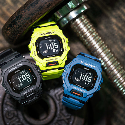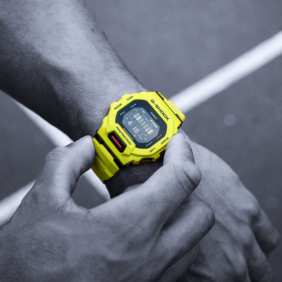The iconic square form of the very first G-SHOCK, now with an accelerometer, distance measurement and Smartphone Linkfunctionality. More than ready for running and other sporting pursuits, these watches integrate toughness-driven design with sportstechnology. Think of it as essential training gear to complement your active lifestyle.