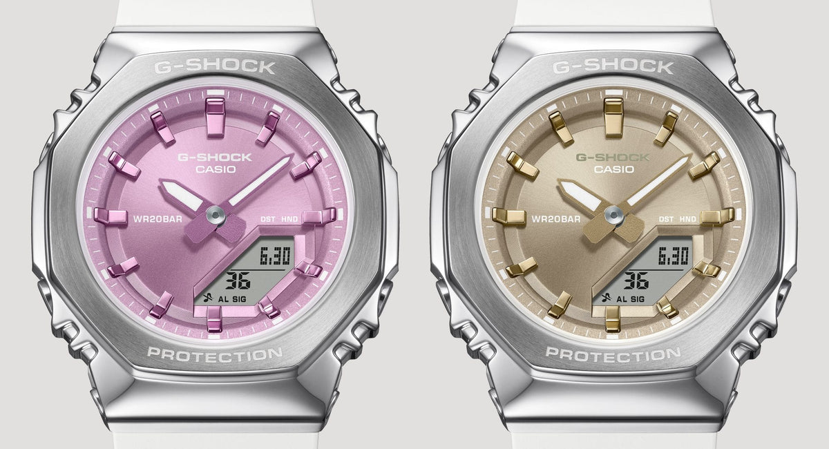 Introducing two new GM-S2110 watches with metal bezels and dials. On-trend dials in brilliant shades elevate the pure look of the iconic octagonal form. The white band harmonises with the metal’s gleam, bringing a luxe touch to the wrist.
