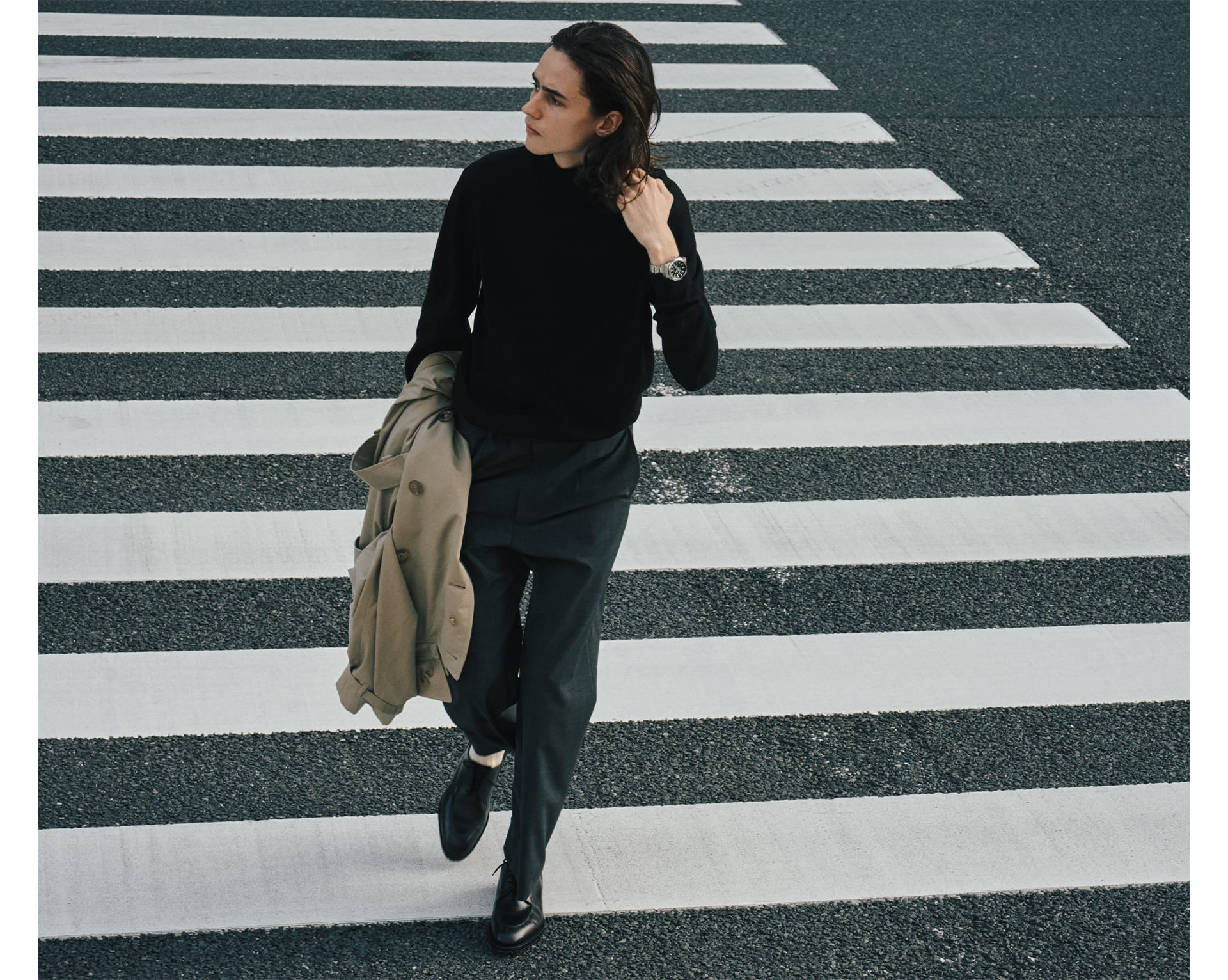 Balancing feel and function — Our constant questioning of what is truly necessary led us to embrace a subtractive aesthetic. The result is a design of pared-down beauty, reflected in a case measuring less than 44.2 mm in diameter with an 11.6 mm profile, and a total weight of 118 grams, for a minimalist metal watch that blends seamlessly with any style.