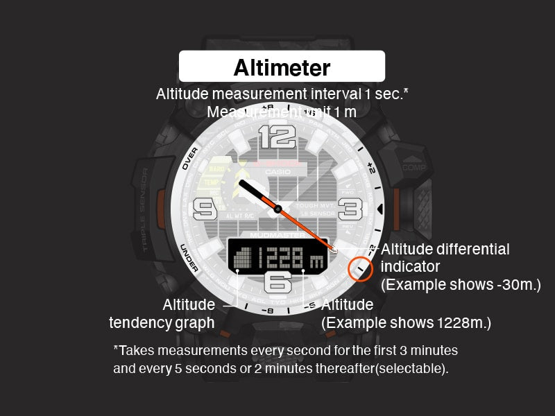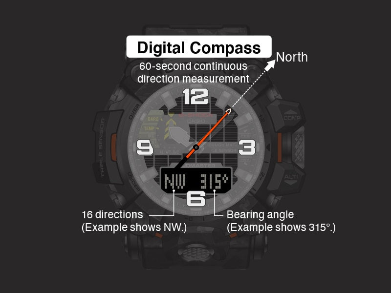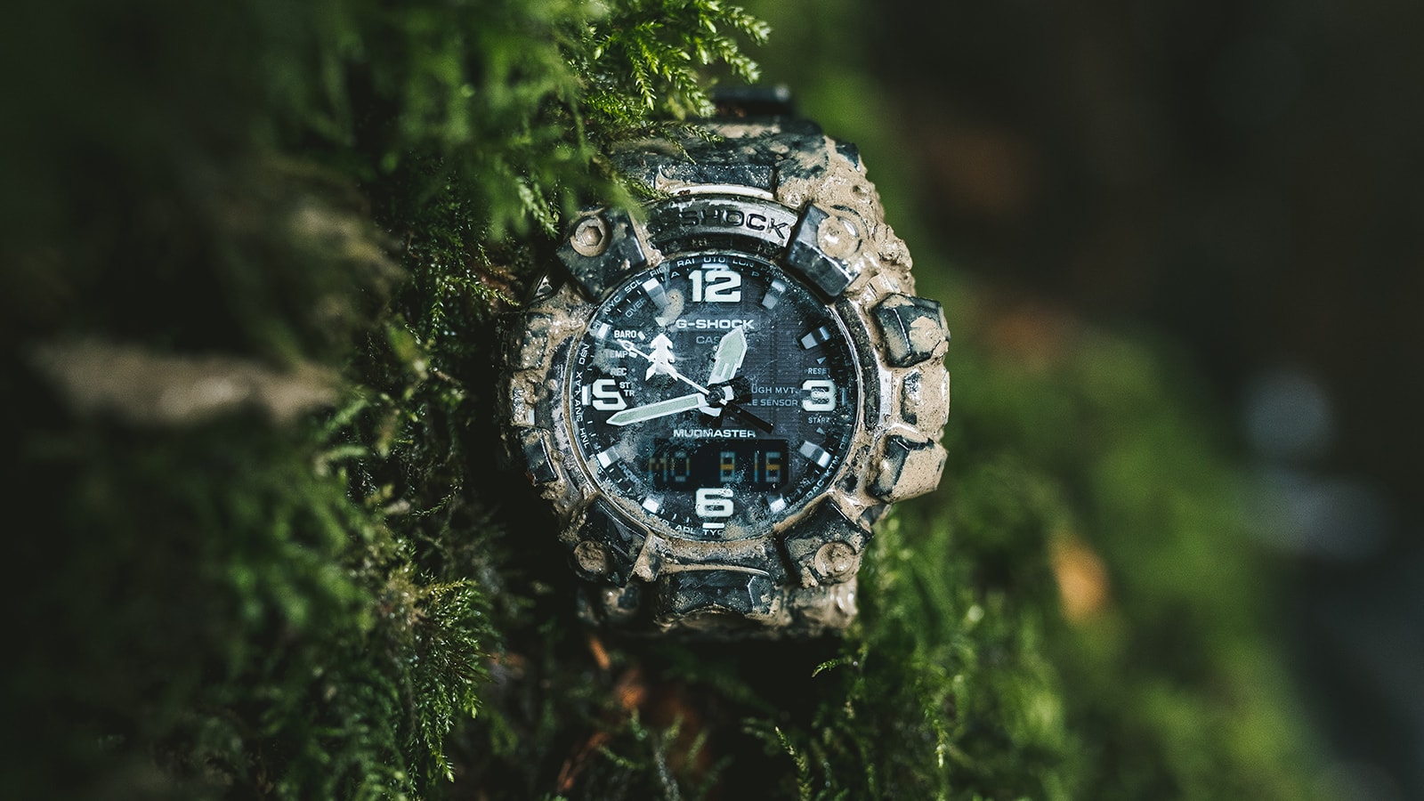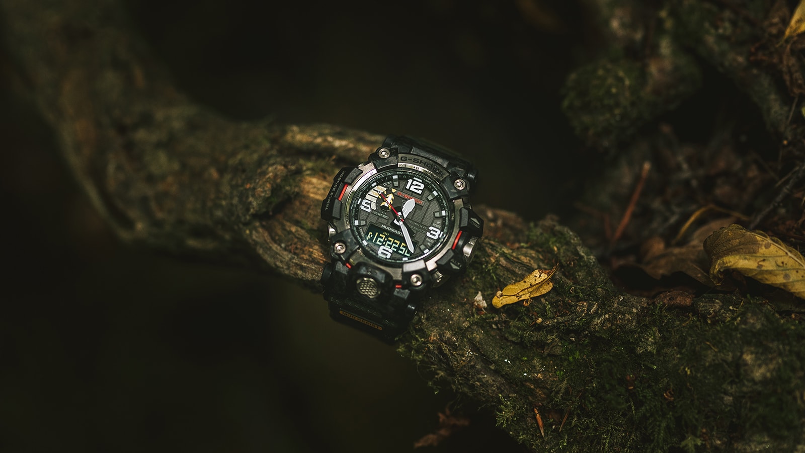 Retains the dust- and mud-resistant structure of the MUDMASTER series and adds a forged carbon bezel and Carbon Core Guard structure to make the watch smaller and lighter. With advanced technologies including solar-powered radio control and triple sensor technology, the watch supports land missions in the harshest conditions.