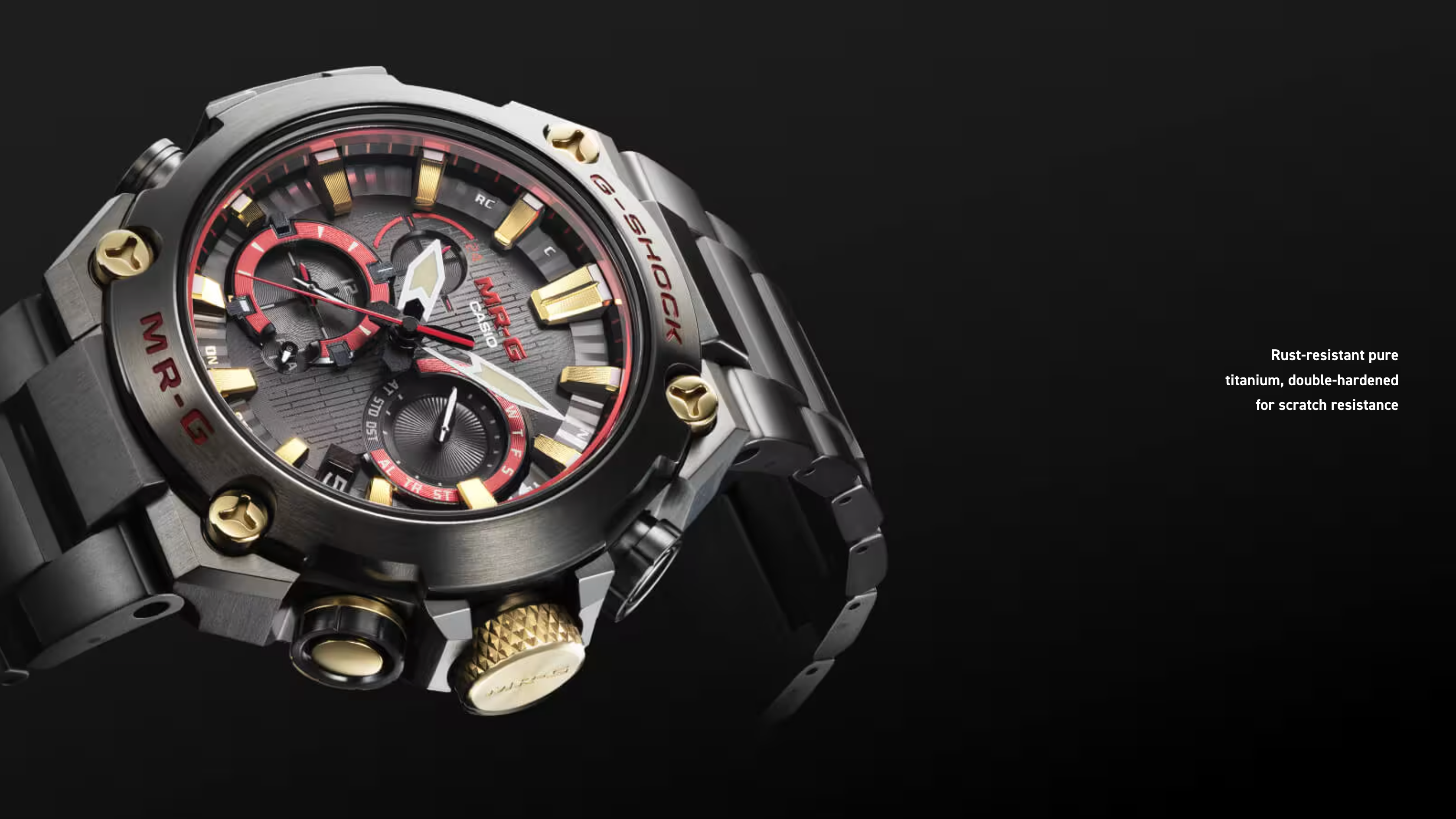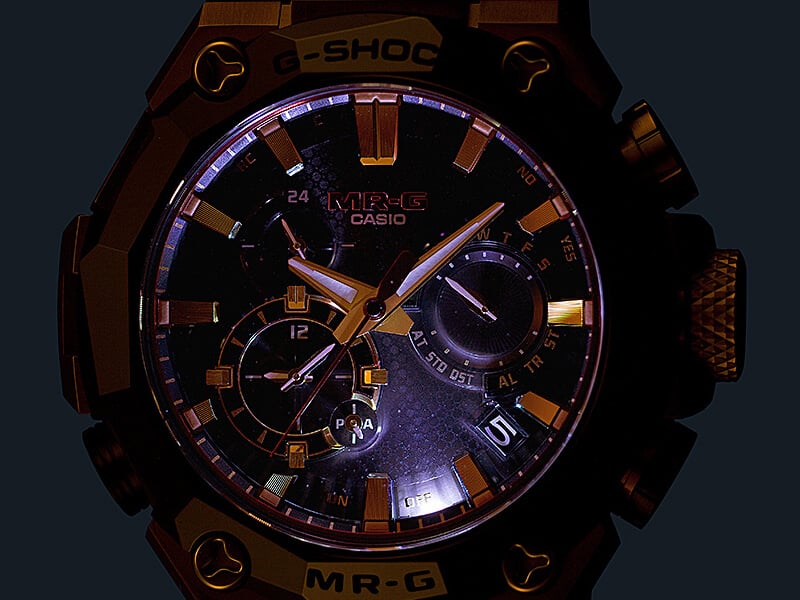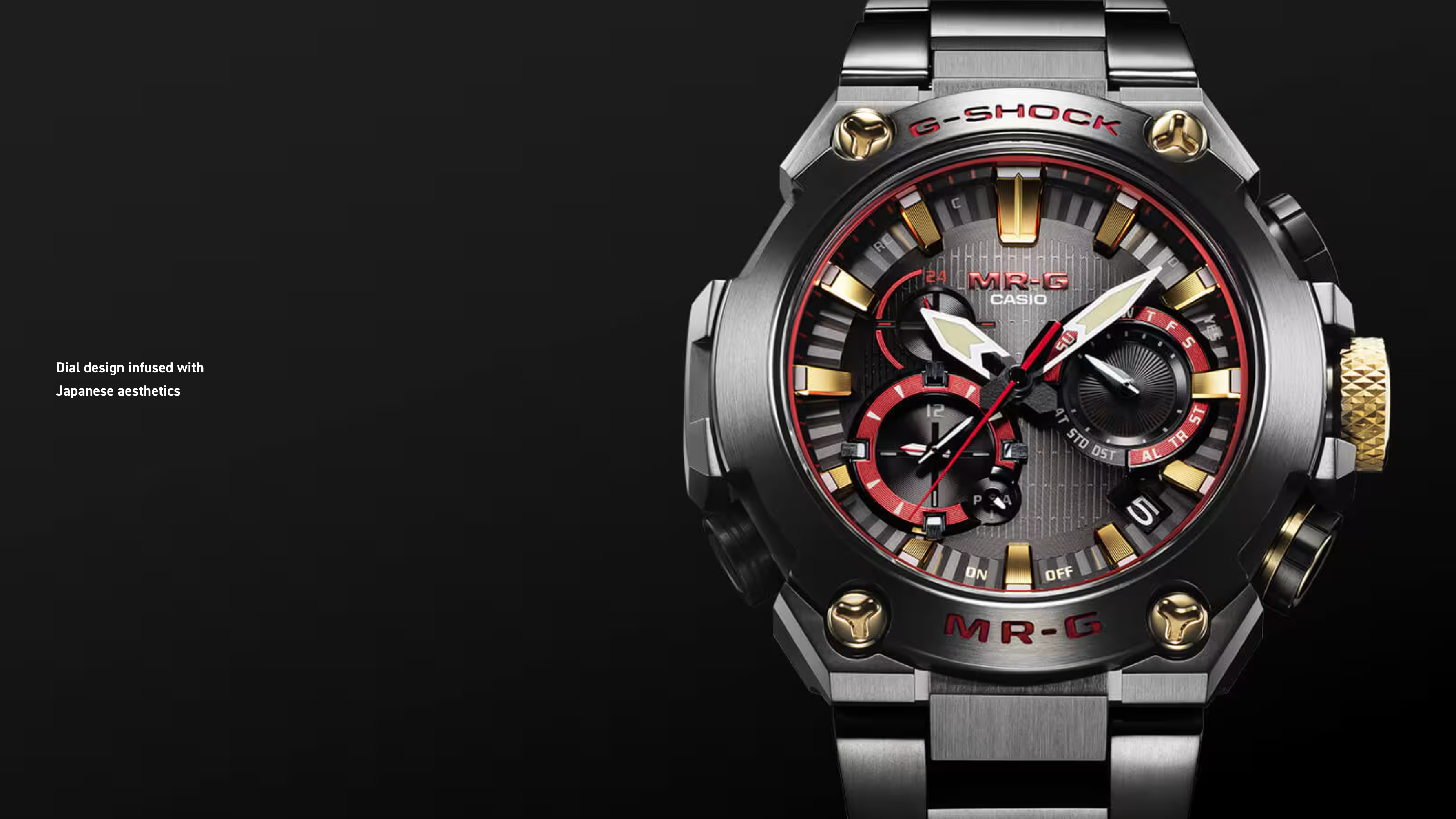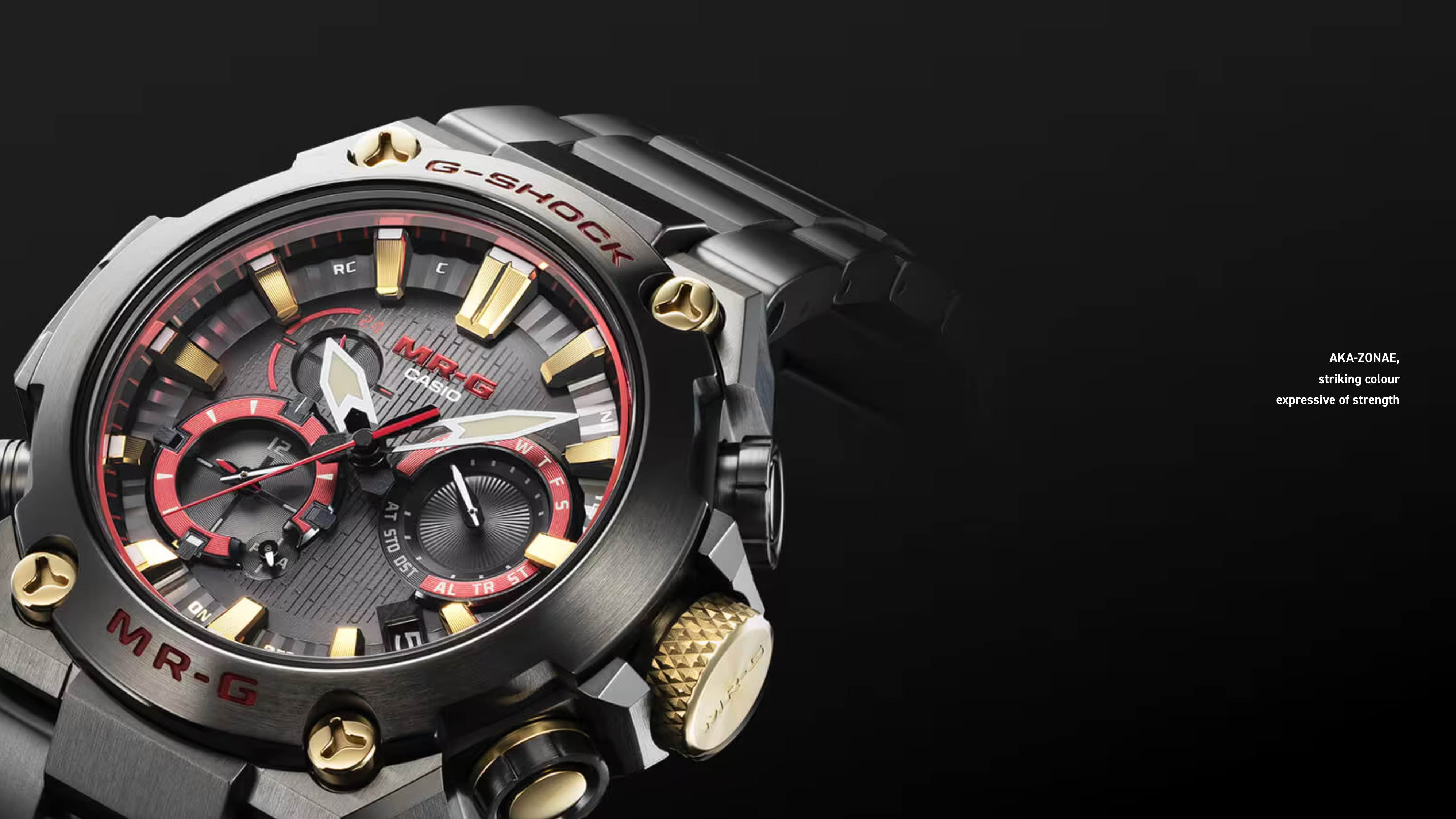 The MRG-B2000 welcomes a new colour option with AKA-ZONAE, a shade of red signifying strength since days of old. The dignified solidity of the watch’s black exterior is accented with this traditional Japanese hue of deep crimson paired with gold colour for a look positively ornate.