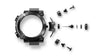 Lightweight, rust-resistant titanium is used for key exterior components — from the case, bezel, and case back, to the crown, buttons, and screws. The watch is made up of an intricate combination of over 70 exterior components, achieving a powerful and beautiful form. A protective structure offers face-guarding functionality with buffers made of fluoro rubber installed in the space between the bezel and case. A deep-layer hardening process and diamond-like-carbon (DLC) coating provide even greater strength and abrasion resistance. The case incorporates a crown and case back that both feature a screw-lock construction. These and other features throughout the design keep the watch air-tight to ensure water resistance for diving.