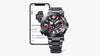 The dial ring and inset dial ring feature accents in the G-SHOCK brand colour of red, creating a vibrant contrast with the base tone of black to express both strength and beauty. Red vapour deposition is applied to the case back’s sapphire crystal as well.