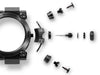 The newly developed protective structure offers enhanced strength, with multiple buffers made of fluoro rubber installed between the parts that make up the bezel and in the space between the bezel and case. The included face-guarding functionality helps to absorb shocks from the front, as well as protecting the crystal. The face-guarding components are made with lightweight, rust-resistant titanium and treated with a deep-layer hardening process and DLC coating to provide even greater strength and abrasion resistance.