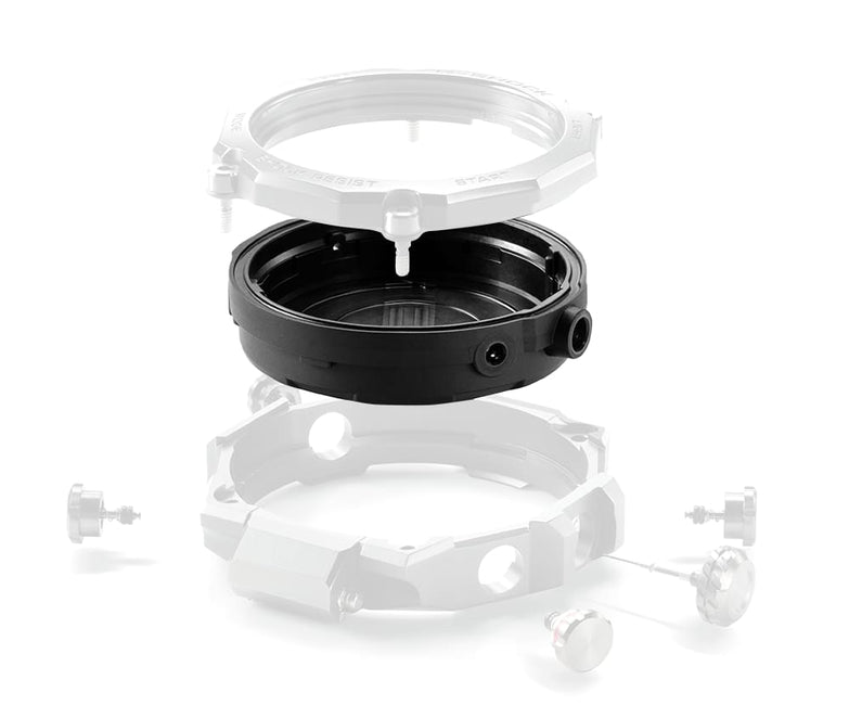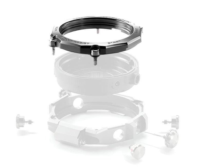 Separate bezel and outer case construction means each can be finished in different colors, conveying the solid feel of metal while allowing for a broader range of color.